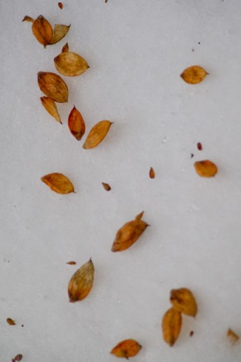 Also seeds everywhere, Yellow Birch (Betula alleghaniensis), White Ash (Fraxinus american) and Hop Hornbeam (Ostrya virginiana) being the most prevalent.   Literally tons of the stuff. Stored sunshine. Imagine the voles and other critters under the snow, like a bunch of neighbors at a winter potluck getting fat.