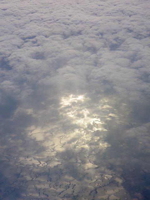I love the challenge of even finding the scale of this photograph. Is it a close-up or what?! Ultimately my eye is guided through the clouds and recognizes, far below, the fractured ice of Lake Erie.