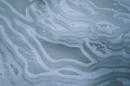 With no direct sunlight reflecting the ice takes on a surreal, ghostlike quality.