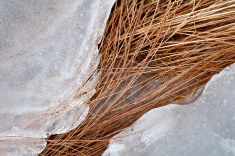 Rotten ice melting off of "grass" of some kind growing around the edge of the bog. Homework to identify it is in order!