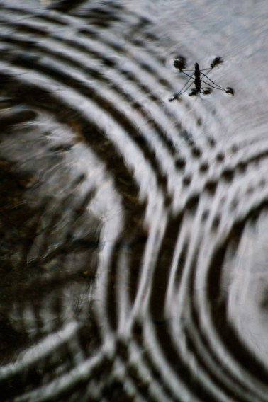 I couldn't very well post this yesterday with the bird photographs. Water striders (Gerridae) are remarkable little creatures however, set off, in this photograph, by a pair of ripple it made a moment earlier.