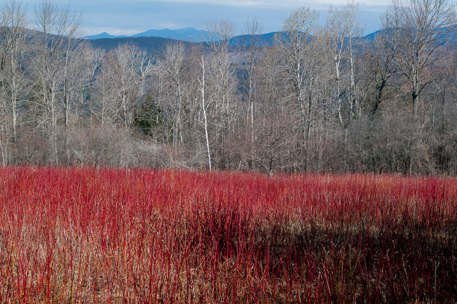 I’ve never seen a stand of Osier quite like this, a magical combination of the time of year when the color is intense and the stunning setting of the gray mountains behind.