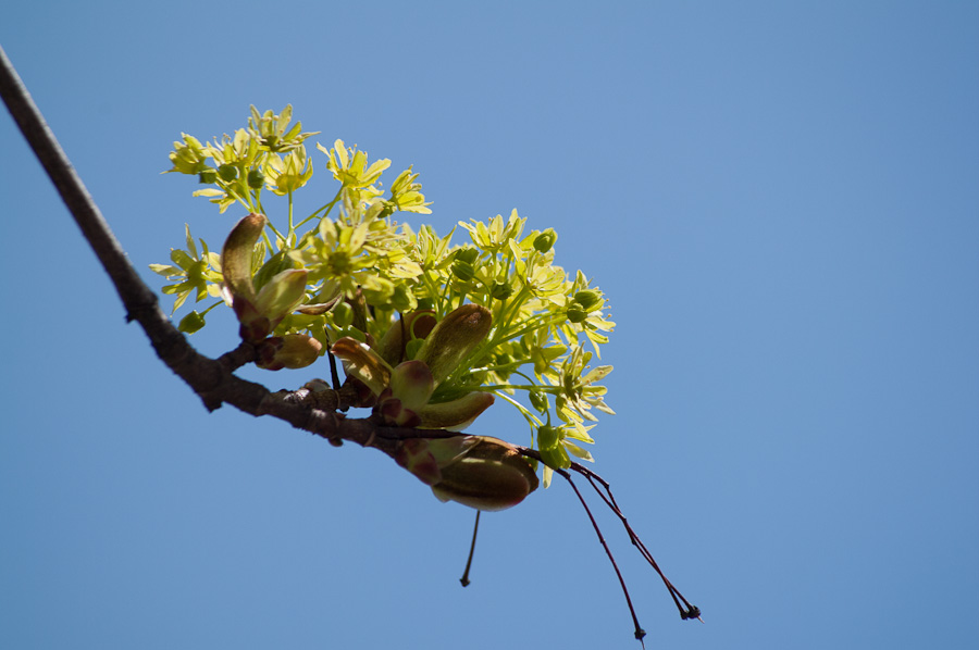 Considered by many to be a weed tree, the Boxelder Maple presents its showy flowers and new leaves this week.