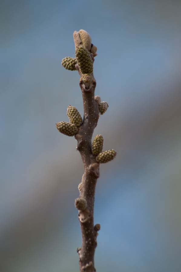 The male flowers of Butternut (Juglans cinerea) are just beginning to show on this branch. Unfortunately this marvelous species has been devastated by canker, a fungus, in most of Vermont and in many other areas of the country.