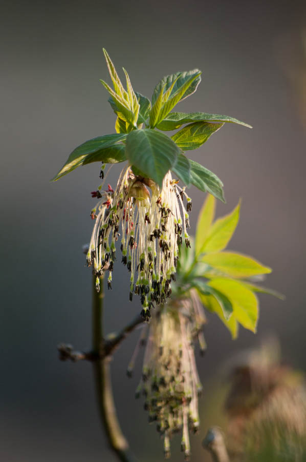 The flowers of the Boxelder Maple (Acer negundo) mature and begin to give way to seeds and new leaves.