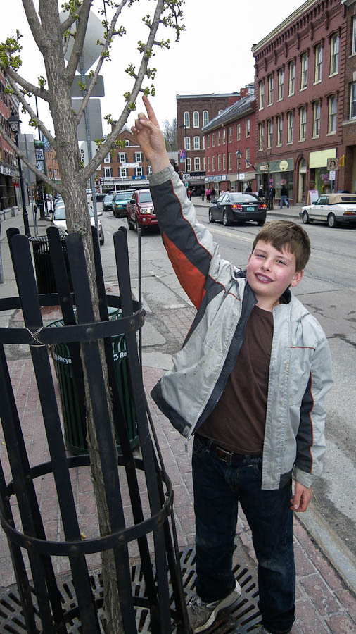 My new tree buddy pointing to the male flowers he’d found on one of the downtown Ginkgo trees.