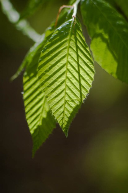 The leaves of the American Beech (Fagus grandifolia) always amaze me. They have been unfolding these past few weeks. In another few they’ll have provided food to many creatures and become hardened into their tougher summer green. For now, they are remarkably delicate, newly green and covered with “hairs” and crisp folds.