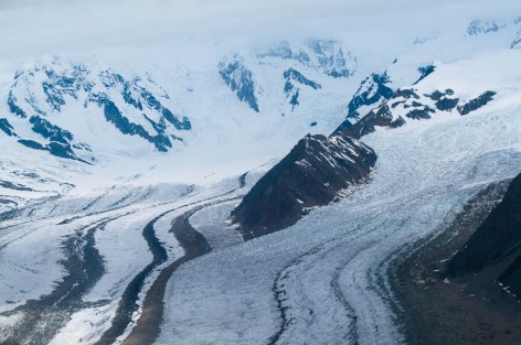 The Kennicott Glacier coming in on the left meets the Root Glacier forming a medial moraine (dark strip in center). None of that description really tells the story because words—even these photographs—just can’t do the job!
