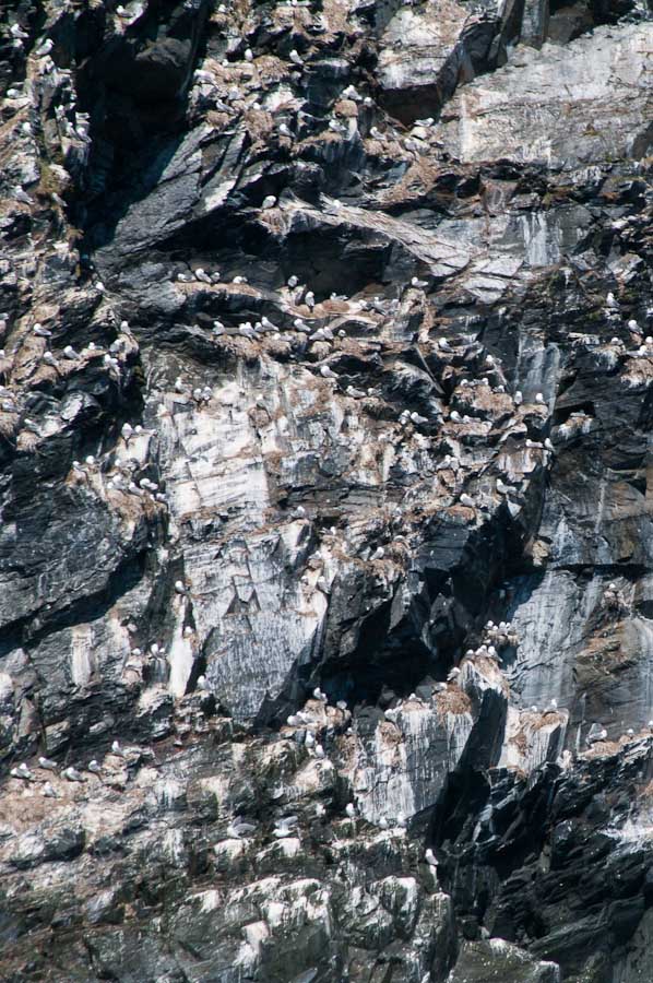 The birds often nest by the thousands on a shear face of a rock cliff.