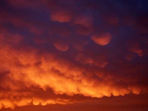 Sometimes the heavens just turn it up so high that no one can miss it! I called all the neighbors out to see this spectacular sunset. We all stood right in the middle of the street with our mouths wide open in amazement. The clouds are mammatocumulus. Again, I made no alteration of the image in the camera or software.
