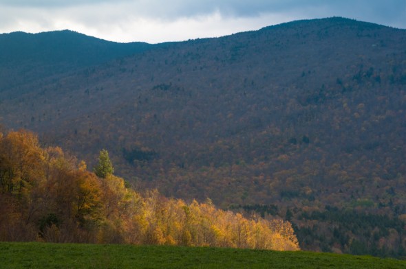 This time of year things change so rapidly. A hard frost, as an example, and many leaves are down, insects dead. But the world is one of microcosms, and, as we saw yesterday on our trip around the base of Camel’s Hump, one valley can still be ripe with peak foliage while the next is ghostly gray.