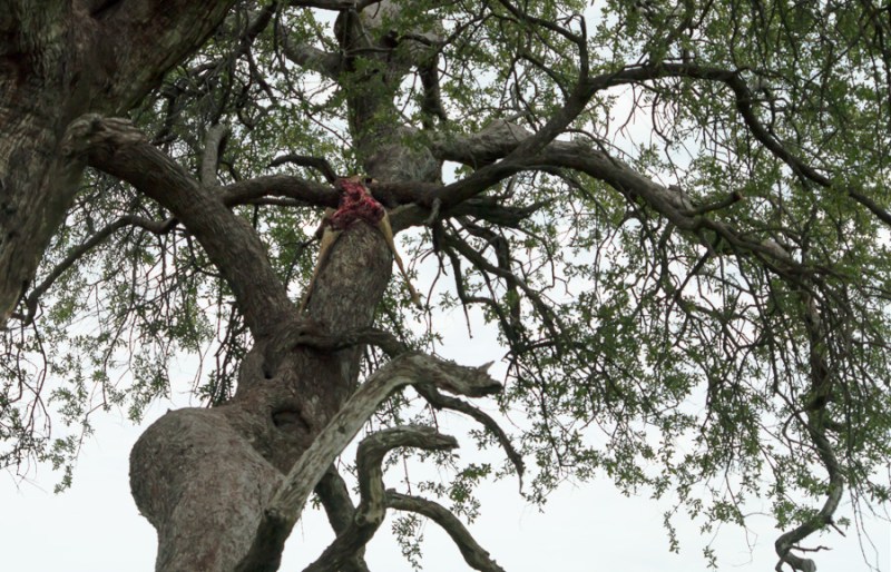 Up in the same tree was “the kill,” the remains of an impala dragged to this position by the mother cat.