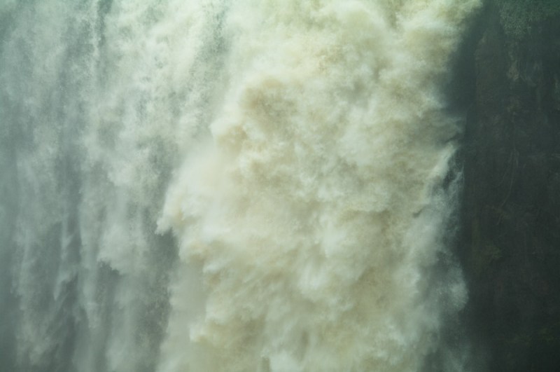 From a distance one only sees a huge area of “smoke” pluming up from the horizon. It is the mist of vapor being pounded up into the air from this 100-meter high magnificence. Up closer the same “smoke” rained down, sometimes with gale force, leaving me laughing with delight and soaking wet.