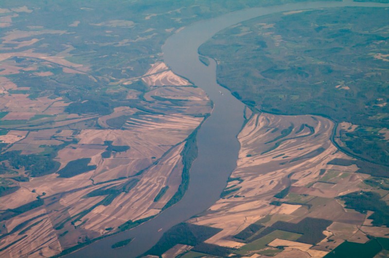 Another view of the Ohio River, shaped by flooding and farms, all too often working together in ways that are not good for the Planet.
