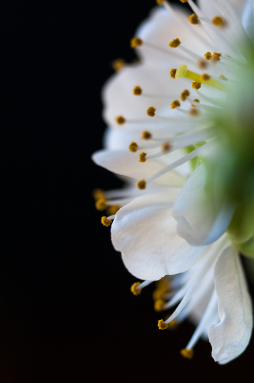 A cherry blossom, forced on a stem I pruned and brought inside several weeks ago. Outside the blooms should open later this week.
