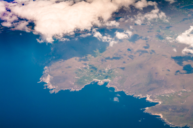 The flight home from the UK last week began in the pounding rain and clouds but, fortunately, shortly after take off the skies cleared. Our routes took us up and over what must have been the northern coast of Ireland, but it could have been Scotland. Looking down it was fascinating to imagine life on the edge, greening and easy to see from my window seat but obviously much different on the ground.