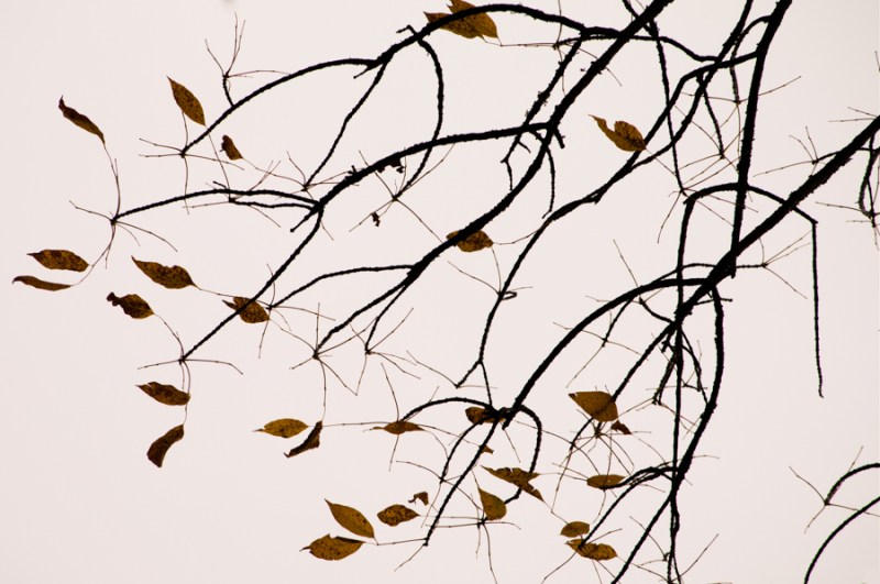 And as leaves blow away in the wind, what remains are simple shapes and relationships. Yesterday I saw what I thought were leaves swirling through the air until they turned into birds flying up into a leafless tree! In this part of Fall, what we call “post-peak,” those kinds of simple, beautiful relationships are everywhere.