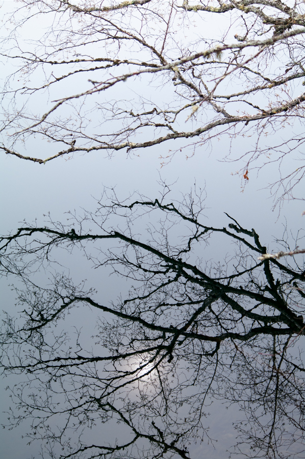 A White Birch reflecting, with the sun, in the dark waters of #10 Pond