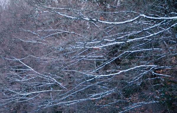 Along the margins of the woods, the trees reach out to the sun. On a winter day it is the perfect place for snow to lay.