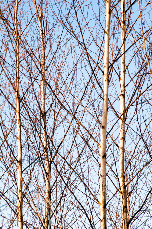 Branches and trunks of young Birch trees.