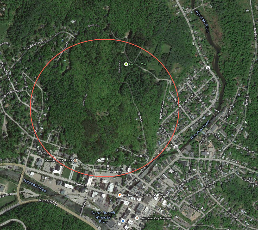 This 200 acre park is a wonderful resource. The Statehouse is in the lower left corner of the photograph.