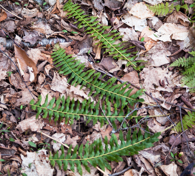 Christmas Fern leaves wintered over.