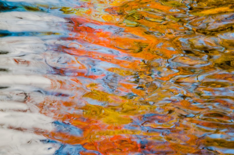 I recently showed three photographs reflections in water at the recent Valley Arts Photo Show at the Big Red Barn, a wonderful venue, especially when filled with hundreds of photographs from dozens of fellow photographers. I was all the more pleased—and honored—to have received an Honorable Mention for the photograph above, Reflections with Leaves.