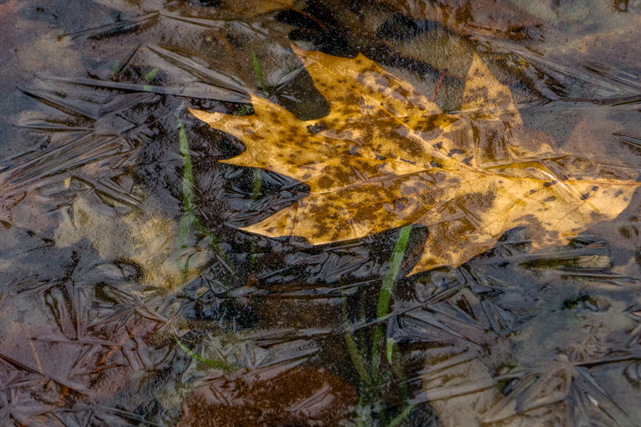 Some changes in life are predictable. The return to cold weather is one I always look forward to—for many reasons: a much simplified landscape, seeing the “bones” of trees, the winter night sky, snow in many forms, hoarfrost, footprints in the woods, and, this time of year, new ice.
