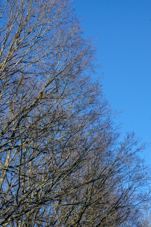 Today the wind was blowing hard. The last few leaves launched across the sky, branches swinging back and forth. Yes, no doubt, some came down but most are still there for another day, even the snowy days that are coming soon. The bones will rest until spring puts them to work pumping life back into the trees. Until then, I’ll be happy to walk a back-county road lined with these old friends of mine.