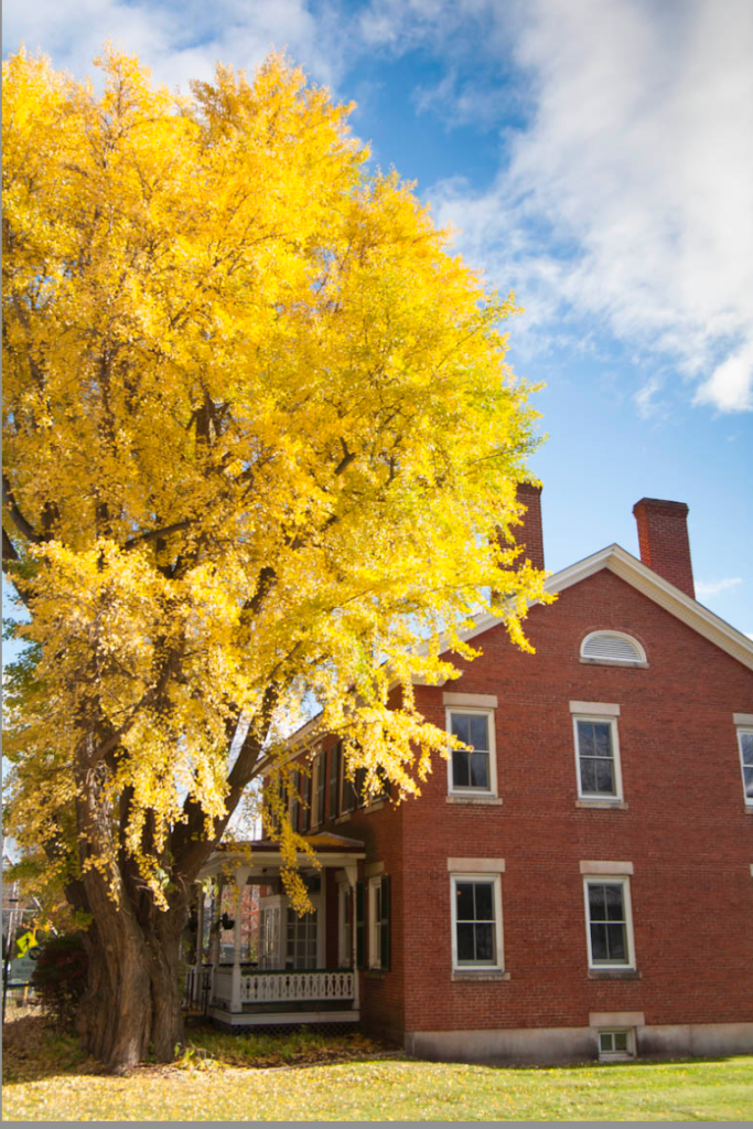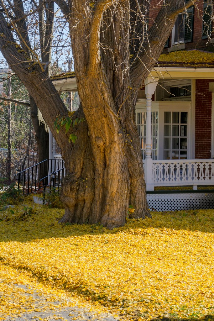 Probably around 1880 one was planted on Barre Street in Montpelier where it continues to grow and enchant those who take the time to notice it. In the Fall, of course, it is undeniably present, typically showering the lawn beneath it with golden leaves, usually all in a morning. The trees are worth a few minutes of reading about as so much about them is unique (including their sex lives); the Barre Street tree is a male but the wind-blown pollen fertilized the only female in town which is four blocks away!