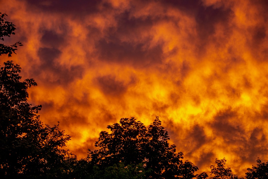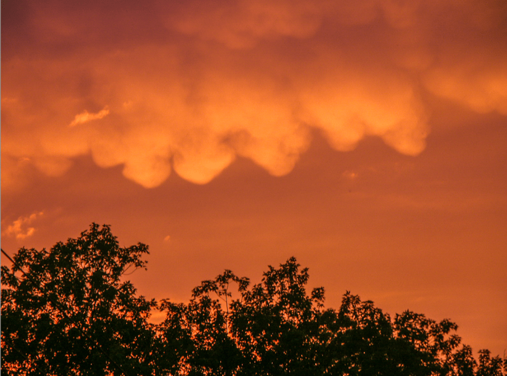 We all know skies can change quickly. How often have I said “One more cup…” only to find a brilliant sunrise gone and changed to a blue sky. These mammatus storm clouds in a sunset were the opposite: they just kept getting more and more intense for about fifteen minutes AND they were right out the front door of our house! By the end the whole neighborhood was standing in the street, mouths agape with wonder. By the way, despite the fact they often forewarn very stormy weather, it never did rain on us! Keep your eyes open for these unusual formations this summer.