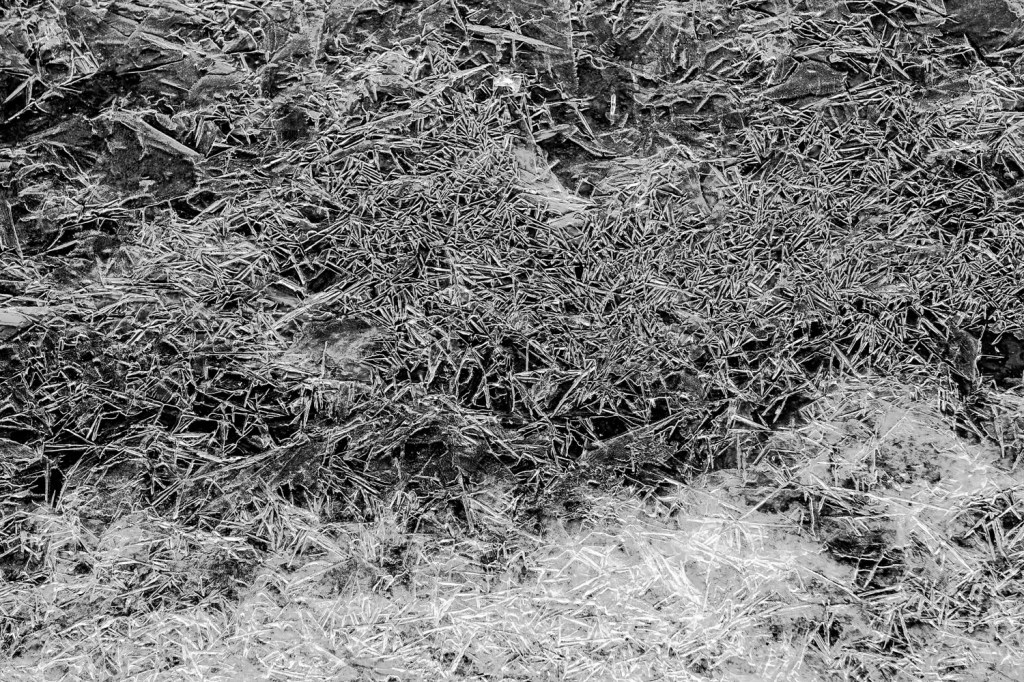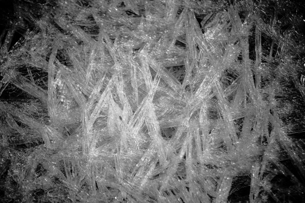 In other places a similar process resulted in crystals that we several inches long and deep, virtual needles of ice.