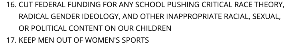 • Eliminate federal policies that promote LGBTQ+ equality in schools, universities and the military