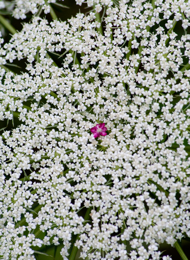 The oft-colored center of the Queen Anne’s Lace flower, probably an evolutionary advantage to attack pollinators.